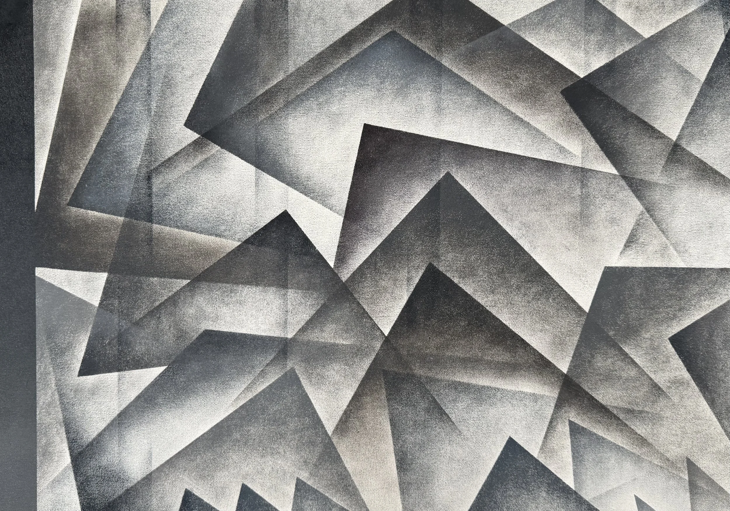 My use of open angular forms is a ‘nod’ to the expressionist abstractions of the early twentieth century, and stems from my hypnagogic visual and tactile experiences as a teen, experiencing images that possessed an extreme graininess, a lack of colour, sometimes accompanied by a sensation of sinking, slow moving limbs and or entrapment.
